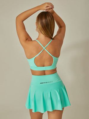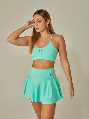 Top deportivo con silueta dinámica y escote en la espalda, ideal para hacer ejercicios de mediano y bajo impacto con costuras invisibles.